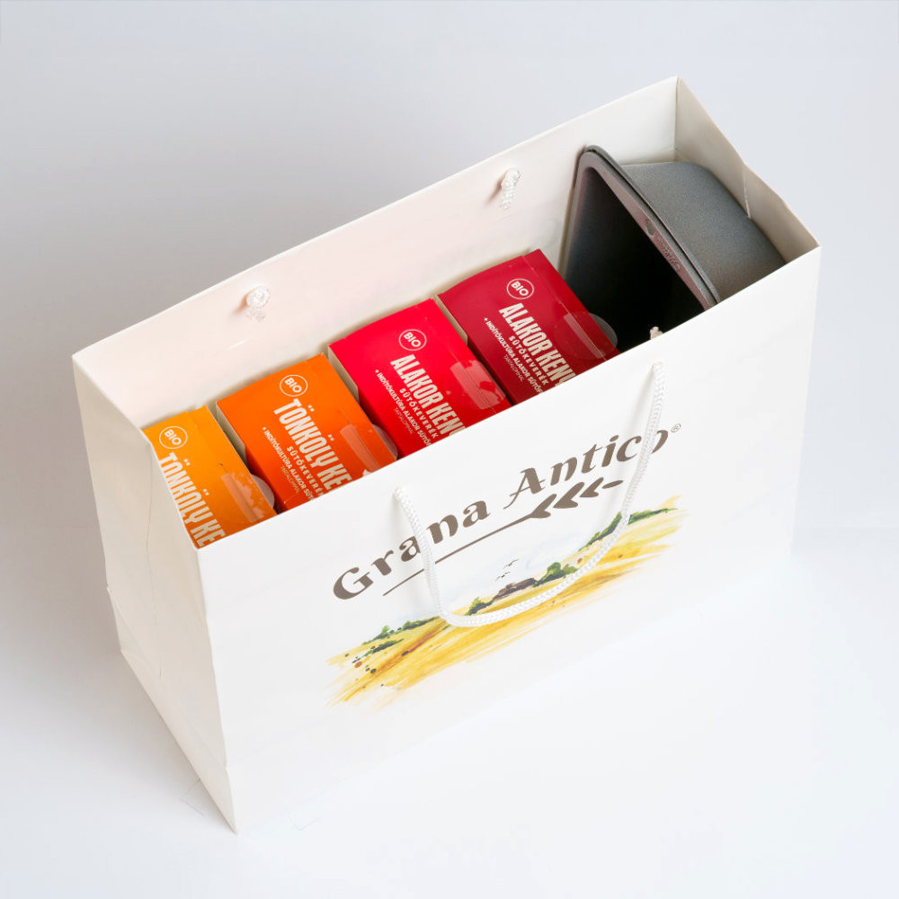 A csomag részét képezi egy tartós, tapadásmentes fém kenyérsütő forma, amely garantálja a könnyed sütést és a kiváló végeredményt. Az egész összeállítást egy exkluzív papírtasakban kínáljuk, amely ajándéknak is tökéletes. A hosszú eltarthatóságú sütőkeverékek révén felfedezheted az alakor és tönköly egyedülálló ízeit, és akár hetekig élvezheted az otthon sütött kenyerek frissességét.